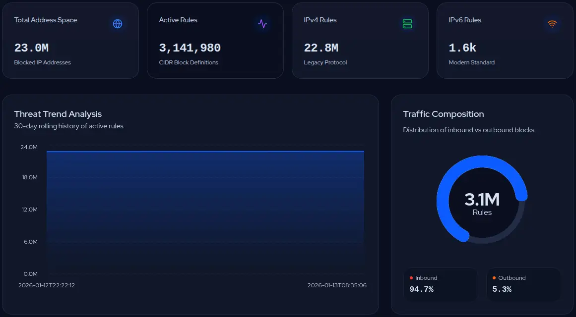An open source project developed by Bitwire to demonstrate the practical application of automated threat intelligence. The system analyzes over 20 million malicious IPs in real-time, reducing hostile traffic by 99% and improving visibility of real threats.